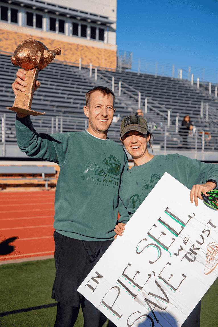 The Turkey Bowl is a four-team touch football tournament where the winner gets a paper mache turkey trophy (yes, it was built in-house and is falling apart, but could be the most coveted item in the building).